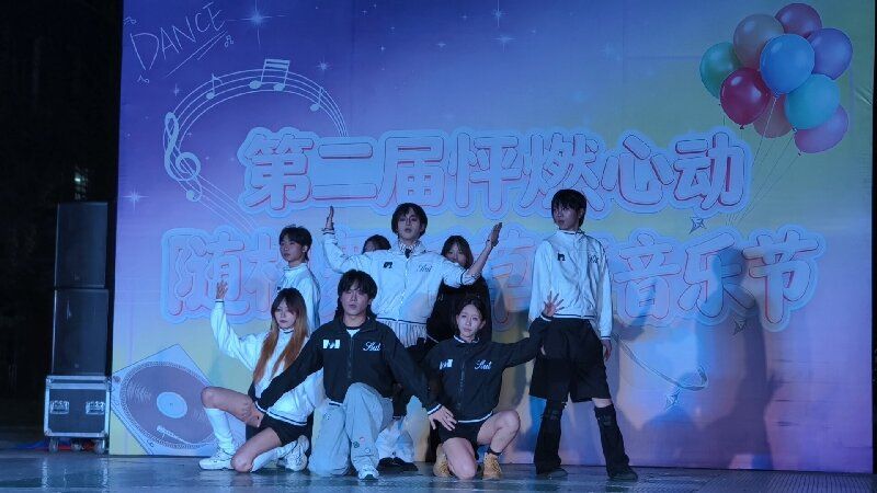 演出期间,多元曲风轮番登场、各有特色:流行歌曲婉转悠扬、民谣小调温柔治愈、摇滚旋律热血沸腾、合唱曲目整齐嘹亮;舞蹈节目亮点纷呈,Kpop韩舞活力四射、爵士舞风情绰约、街舞动感十足、民族舞韵味悠长,每一个动作都展现着学子们的青春活力;乐队的高燃演绎与创意舞台秀的精彩呈现,一次次将现场气氛推向高潮。广场上的欢呼声、掌声与音乐声此起彼伏,成为春日校园里动人的旋律。